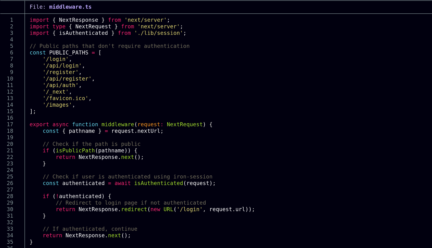 I find the middleware.ts file: